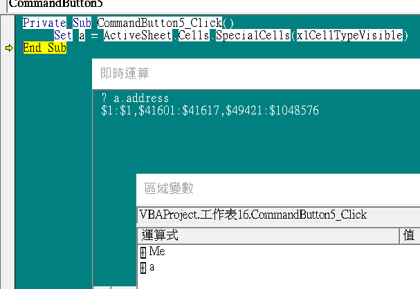 (2)內建函數範圍設定這部分,回想到VBA:Cells.SpecialCells 簡單應用+ 資料排序一文,透過設定為xlCellTypeConstants方式來取的位置即可解決。
